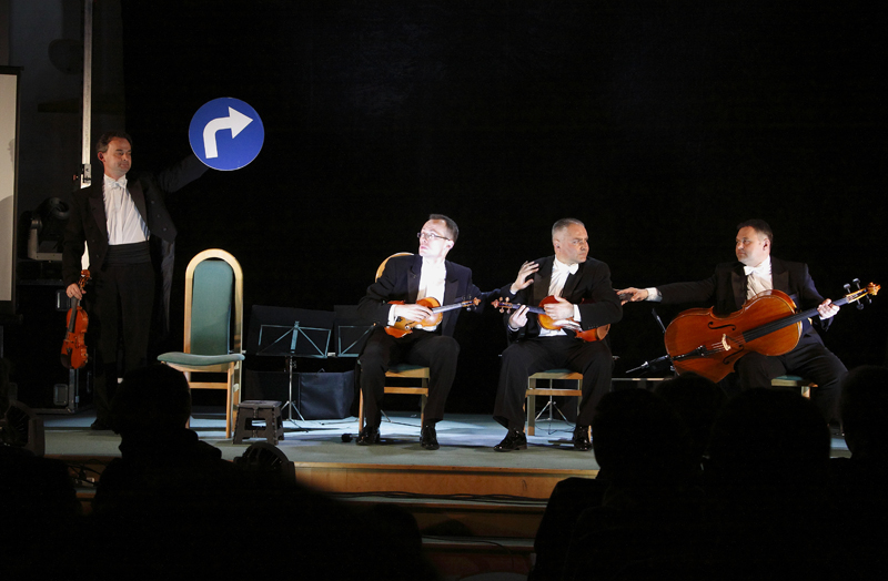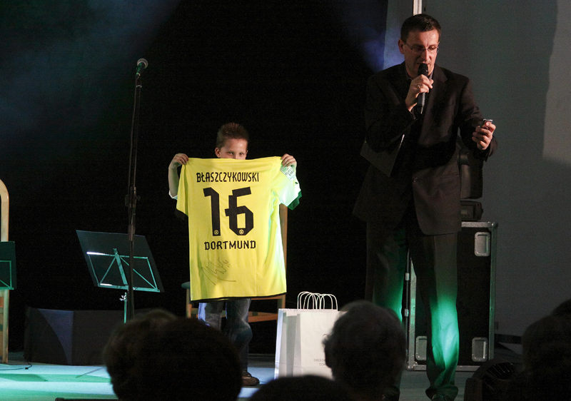 Spotkanie otwarli ks. prof. dr hab. Józef Mikołajec oraz ks. dr Jerzy Dzierżanowski, którzy podziękowali wszystkim za udział i udzielone wsparcie oraz życzyli dobrej zabawy. Emocje wśród publiczności rosły, gdyż zbliżał się moment bardzo ekscytujący – licytacja koszulek zawodników Borussi Dortmunt: Kuby Błaszczykowskiego, Łukasza Piszczka i Roberta Lewandowskiego. Koszulki były unikatowe, gdyż zawierały autografy piłkarzy! Atmosferę podgrzewał fakt, że w momencie licytacji trwał mecz Borussi, w którym w drużynie padły aż cztery (!) gole – autorem wszystkich był niesamowity Robert Lewandowski! Po pełnej napięcia licytacji nadszedł czas na główną atrakcję wieczoru – koncert Grupy Mocarta, kwartetu smyczkowego w skład której wchodzą: Filip Jaślar, Michał Sikorski, Paweł Kowaluk i Bolek Błaszczyk. Grupa jest znana z niekonwencjonalnego podejścia do muzyki klasycznej a każdy ich występ to prawdziwe święto kabaretu! Wielu z nas znała formację z występów telewizyjnych, do których jest często zapraszana. Mogliśmy na własne oczy zobaczyć ich najpopularniejsze skecze, a występ muzyków co chwila przerywały gromkie brawa i salwy śmiechu. Każdy z nich był wyjątkowy, ale jeden z nich szczególnie zwracał uwagę – był to występ, w którym artyści „zagrali” razem ze swoimi dziećmi. Było to żartobliwe ujęcie profesji muzyków, widziane oczami ich pociech. Aplauz był długi i głośny!