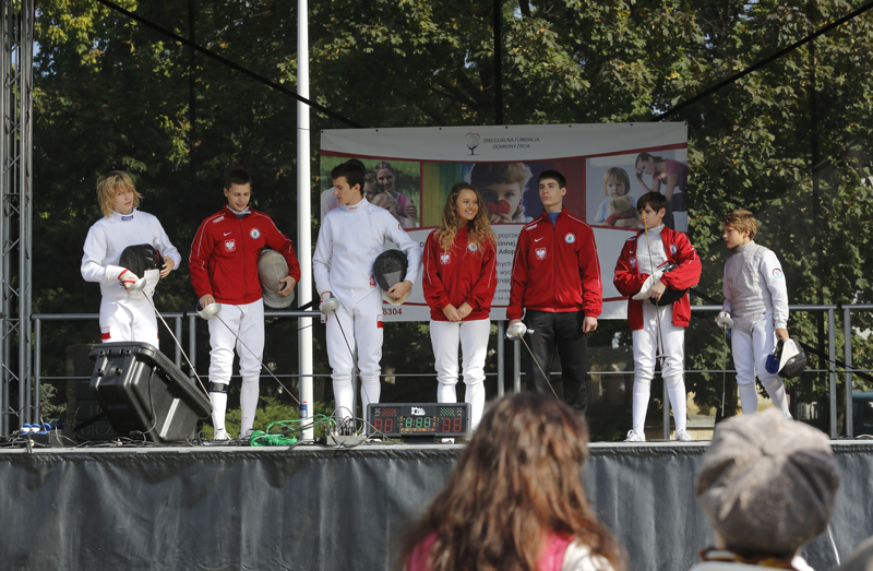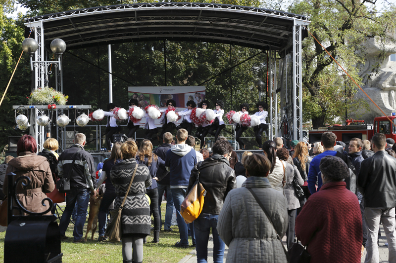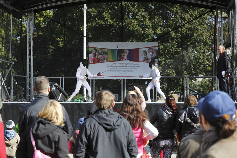 Urodziny to dla każdego czas wyjątkowy. Kolejny mijający rok pobudza do refleksji i każe spojrzeć wstecz na to, co już się wydarzyło z pewnej perspektywy. Okrągłe rocznice urodzin są jednak szczególne, bo inspirują do głębszych przemyśleń i podsumowań. Dla naszej Fundacji również nadszedł ten ważny moment – 5 października obchodziliśmy 20-lecie istnienia! Chcieliśmy, aby nasze „urodziny” miały niezwykłą oprawę. Postanowiliśmy świętować przez cały weekend, 5-6 października 2013 r, a każdy z tych dni miał być wyjątkowy. Włożyliśmy dużo serca w przygotowanie naszego Jubileuszu i teraz już z uśmiechem na ustach wspominamy minione dni.W sobotę 5 października zorganizowaliśmy Festyn Rodzinny, który odbywał się pod hasłem „Rodzina szkołą miłości”. Tytułując nasz piknik zainspirowaliśmy się słowami Ojca Świętego Jana Pawła II, który mówiąc o rodzinie powiedział, że „rodzina jest pierwszą i podstawową szkołą miłości społecznej, powinna pozostać ostoją wśród niszczycielskich prądów i bolesnych doświadczeń”. Nasz festyn odbył się na placu Wolności w Opolu w godzinach 10:00-18:00. Obawialiśmy się trochę o pogodę, bo to jedna z tych spraw, których nie mogliśmy „zamówić”, ale na szczęście i ona nam dopisała. W sobotę 5 października zorganizowaliśmy Festyn Rodzinny, który odbywał się pod hasłem „Rodzina szkołą miłości”. Tytułując nasz piknik zainspirowaliśmy się słowami Ojca Świętego Jana Pawła II, który mówiąc o rodzinie powiedział, że „rodzina jest pierwszą i podstawową szkołą miłości społecznej, powinna pozostać ostoją wśród niszczycielskich prądów i bolesnych doświadczeń”. Nasz festyn odbył się na placu Wolności w Opolu w godzinach 10:00-18:00. Obawialiśmy się trochę o pogodę, bo to jedna z tych spraw, których nie mogliśmy „zamówić”, ale na szczęście i ona nam dopisała. Przyjechaliśmy na miejsce dużo wcześniej, niektórzy z nas byli na placu już o 7:30. Dzięki pomocy wolontariuszy i ogromnego zapału pozostałych, udało nam się sprawnie i szybko porozstawiać namioty i stoiska. Na naszym festynie gościliśmy również sanepid, Wydawnictwo Świętego Krzyża, SKOK, Pracownię rzeźby, Przyprawy Kraków oraz całą gamę gastronomiczną z różnymi pysznościami. W naszych fundacyjnych namiotach mieściły się: ciasta – upieczone przez siostry oraz matki z Domu Matki i Dziecka (przy czym dodać należy, że były tam również wyroby „hand-made”, kolczyki, etui na telefon i kartki okolicznościowe), stoisko ze smalcem, którym częstowaliśmy występujących artystów i wolontariuszy. Naszego smalcu skosztowały też inne osoby, które chętnie wrzucały przysłowiowy „grosik” do domku-skarbonki. Dalej można było nabyć książkę „CzwartePrzykazanie.pl” pod redakcją Iwony Schymalli i Macieja Zdziarskiego, do którego dołączony był specjalny certyfikat – cegiełka o wartości 10zł, która zostanie przeznaczona na rozbudowę naszego Domu Matki i Dziecka. Również Galeria Twórczych Inspiracji wystawiła swoje dzieła w osobnym namiocie – oczywiście wszystkie te „cuda” można było zakupić! Centralnym punktem festynu była scena, na której prezentowali się zaproszeni przez nas artyści, jednak i poza nią działo się wiele ciekawych rzeczy. Oprawę słowną zapewnił duet znany z audycji w Radiu Opole czyli redaktorzy Agnieszka Wawer-Krajewska i Tomasz Zacharewicz. Rozpoczęliśmy parę minut po godzinie 10:00 wraz z zespołem „Loretino”, który wystąpił jako pierwszy. Muzyka tego franciszkańskiego zespołu jest nam dobrze znana, bowiem grupa śpiewała już na naszym Zjeździe. Ich energetyczny występ wybudził wszystkich zaspanych (wczesna pora wstawania dawała jednak o sobie znać…) i wprowadził radosną atmosferę, która wszystkim się natychmiast udzieliła. Coraz więcej osób zaczęło przybywać na plac i, co nas bardzo cieszyło, wśród nich było sporo rodzin z dziećmi. Po „Loretino” na scenę weszły przedszkolaki z placówek nr 33, nr 51 i nr 54 w Opolu. Wszystkie maluchy były pięknie przebrane i głośno dopingowane przez swoich rodziców. Na naszej scenie zaprezentował się później zespół żonglerski „Cudaki”, a w przerwach pomiędzy występami mogliśmy oglądać występy mażoretek – utytułowanego zespołu „Kaprys” z Branic. Następnie oglądaliśmy pokaz tańca, wykonanego przez członków Szkoły Tańca „Fokus”. Punktualnie o 12:00 wystartowała nasza piracka gra terenowa „Wyspa Skarbów”, do której zaprosiliśmy chętne dzieci. Nasi mali poszukiwacze skarbu wraz z wolontariuszami musieli wykonać kilka zadań: m.in. zbudować swój własny statek, porozmawiać z ośmiornicą, która uwielbia zadawać zagadki, pobawić się w teatr, a także wysłuchać pirackiej bajki. Finał naszej gry miał miejsce tuż przy scenie, gdzie dzieci odkryły skrzynię pełną skarbów. Radości było co niemiara i nikt nie odszedł z pustymi rękami! Było nam bardzo miło patrzeć na zadowolone buzie dzieci, które z przejęciem relacjonowały rodzicom przebieg zabawy. Obiecujemy więcej takich gier! W trakcie trwania pirackiej zabawy na naszej scenie można było oglądać doświadczenia naukowe, przeprowadzone przez pracowników Uniwersytetu Opolskiego, a także pokaz robotów przygotowany przez Politechnikę Opolską. Następnie mogliśmy zapoznać się bliżej z szermierką, za sprawą Klubu Uczniowskiego „Start”, posłuchać muzyki dzięki duetowi „Kola&Jula”, obejrzeć pokaz sztuki walki AIKIDO przygotowany przez Klub Przyjaciół Aikido Anny Żołud i ponownie posłuchać – tym razem muzyki instrumentalnej – w wykonaniu Arkadiusza Tomasza Czyżewskiego. Poza sceną można było podziwiać pokaz karate tradycyjnego, wykonany przez Akademię Karate Tradycyjnego w Opolu, a także, dzięki wizycie harleyowców, usiąść